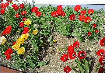商工会の花壇のチーリップでーす